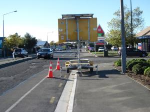 Mobile VMS trailer blocking cycle lane