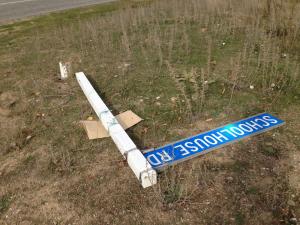 Schoolhouse Rd sign down on corner of Schoolhouse Rd and Bannockburn Rd